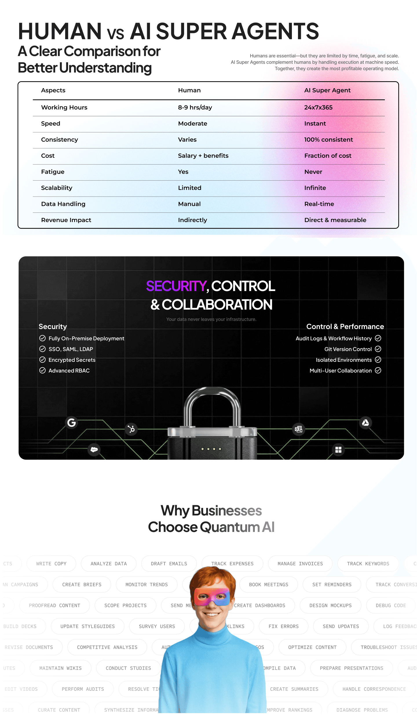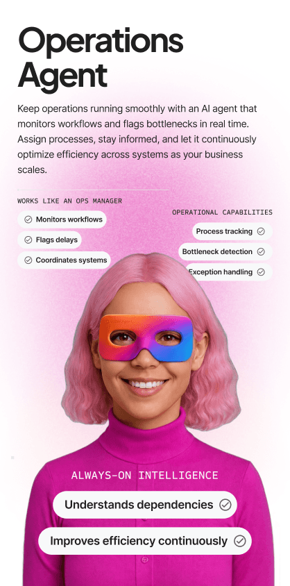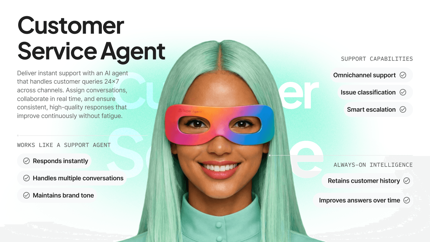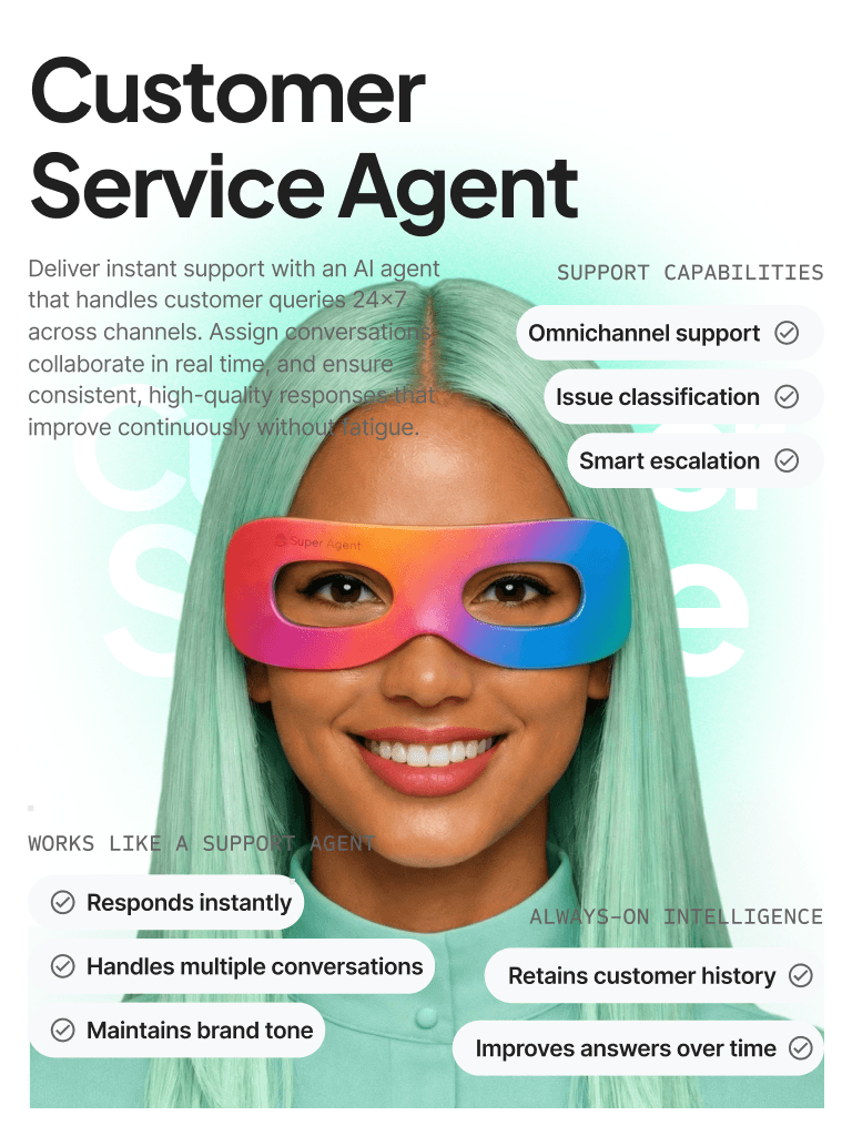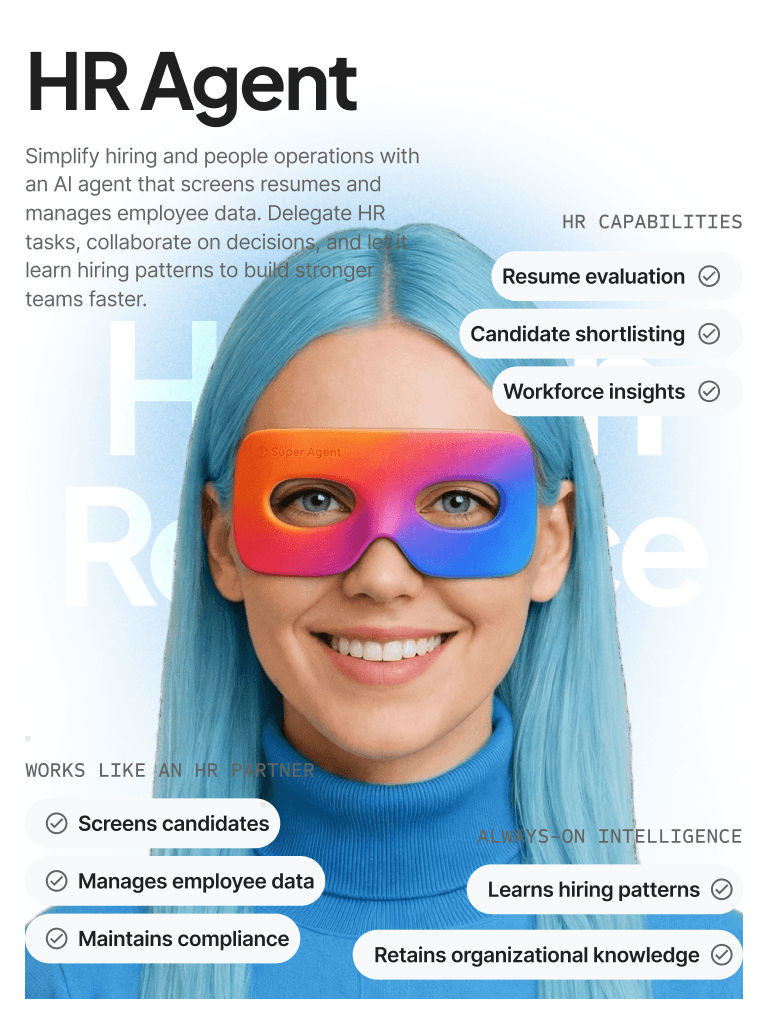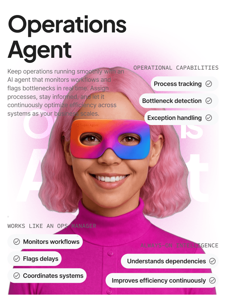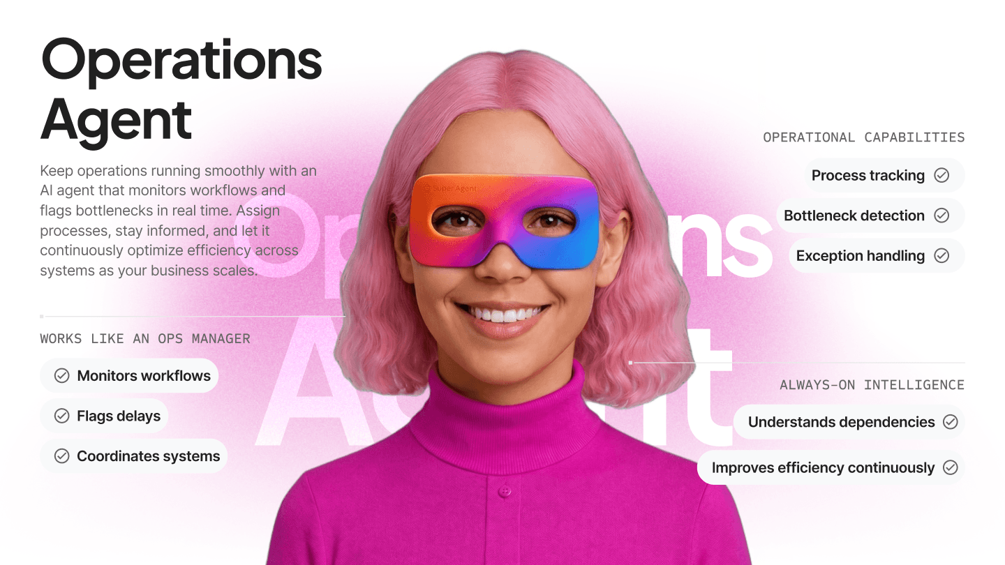 AI Super Agents are autonomous AI workers trained on your business context. They handle sales follow-ups, customer support, marketing tasks, operations monitoring, HR processes, and reporting—while escalating to humans whenever approval is required.
